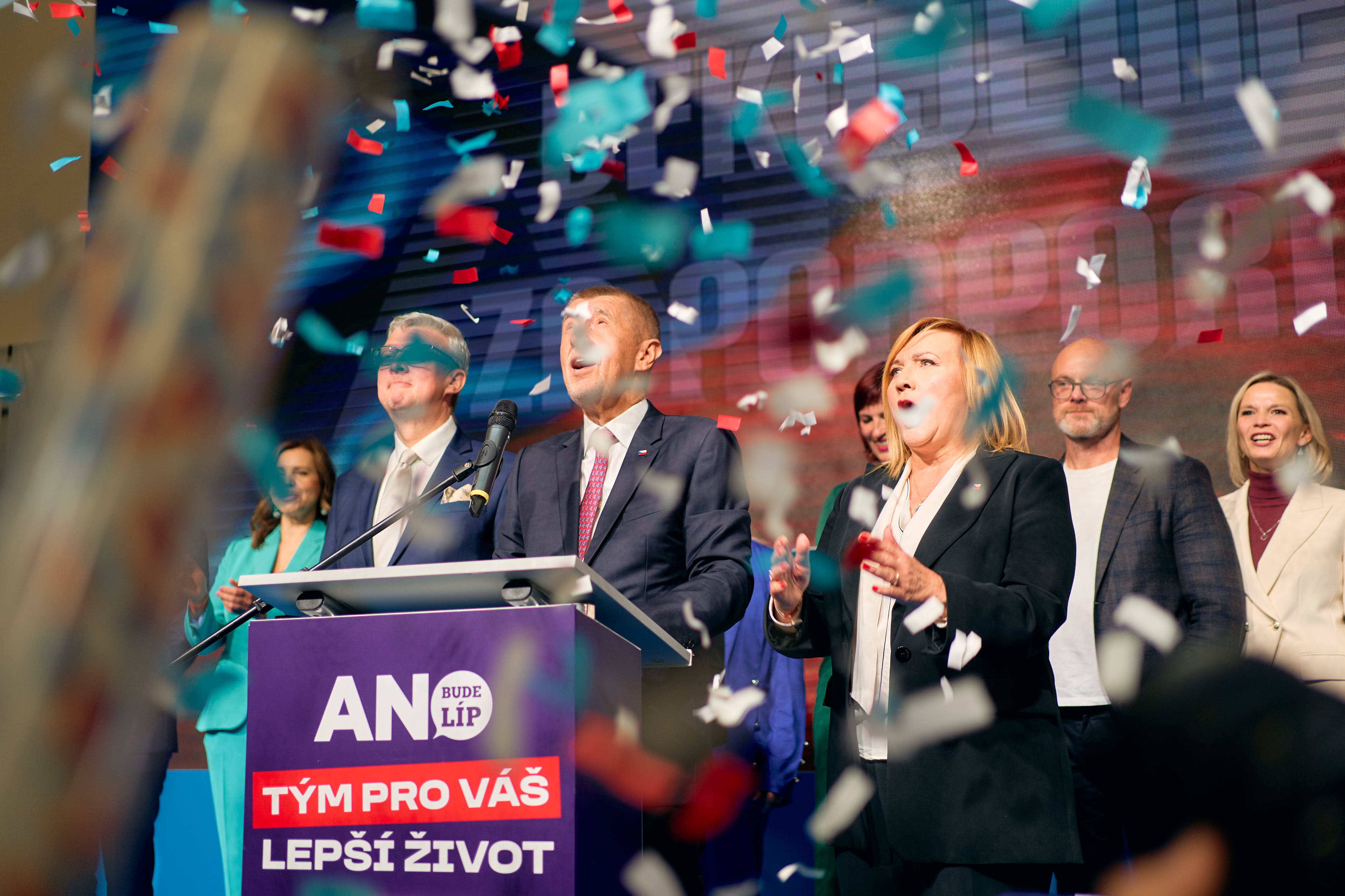 Galerie | FOTO: Babiš se po oslavách ve štábu přesunul domů. Tam jednal s Motoristy a SPD