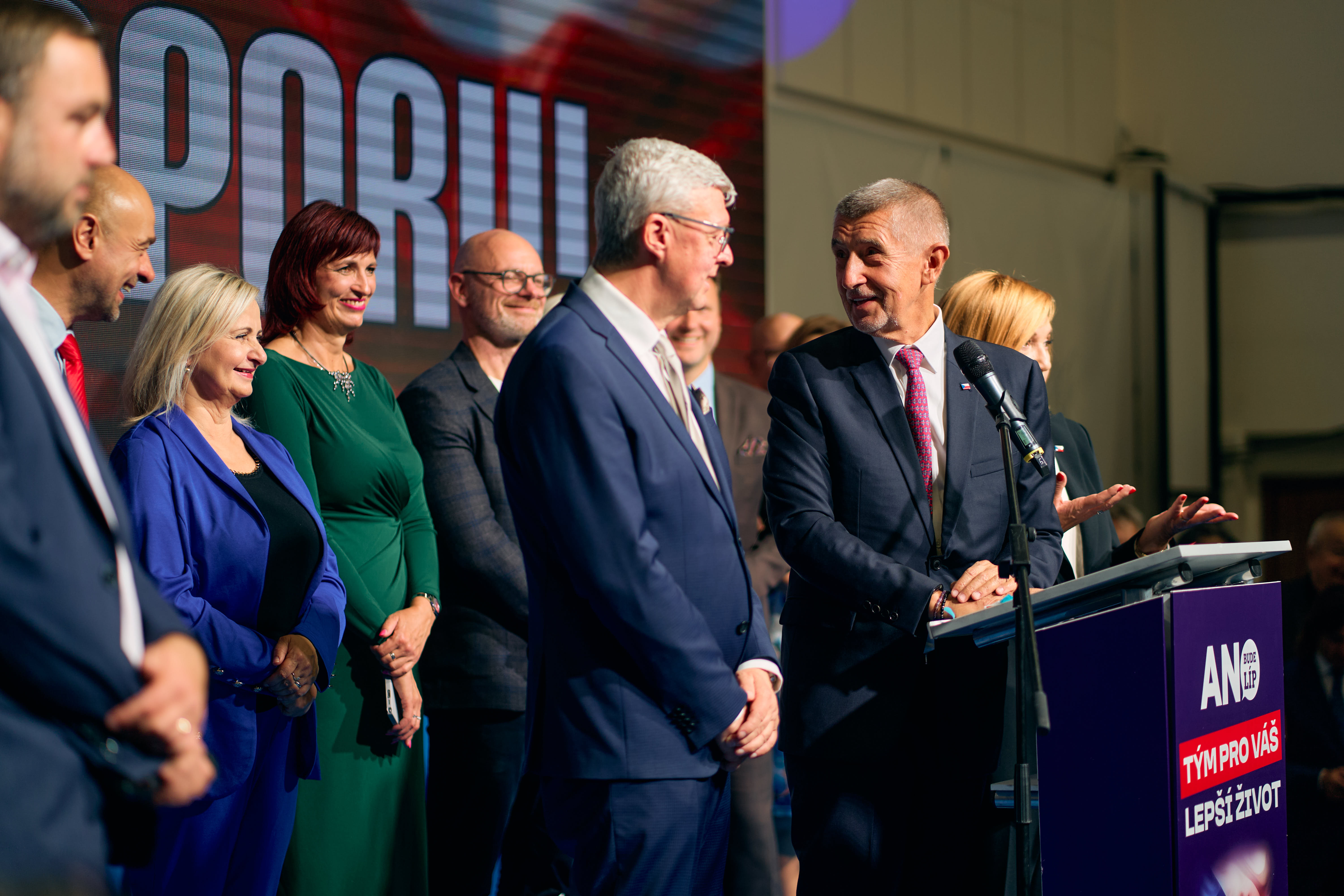 Galerie | FOTO: Babiš se po oslavách ve štábu přesunul domů. Tam jednal s Motoristy a SPD