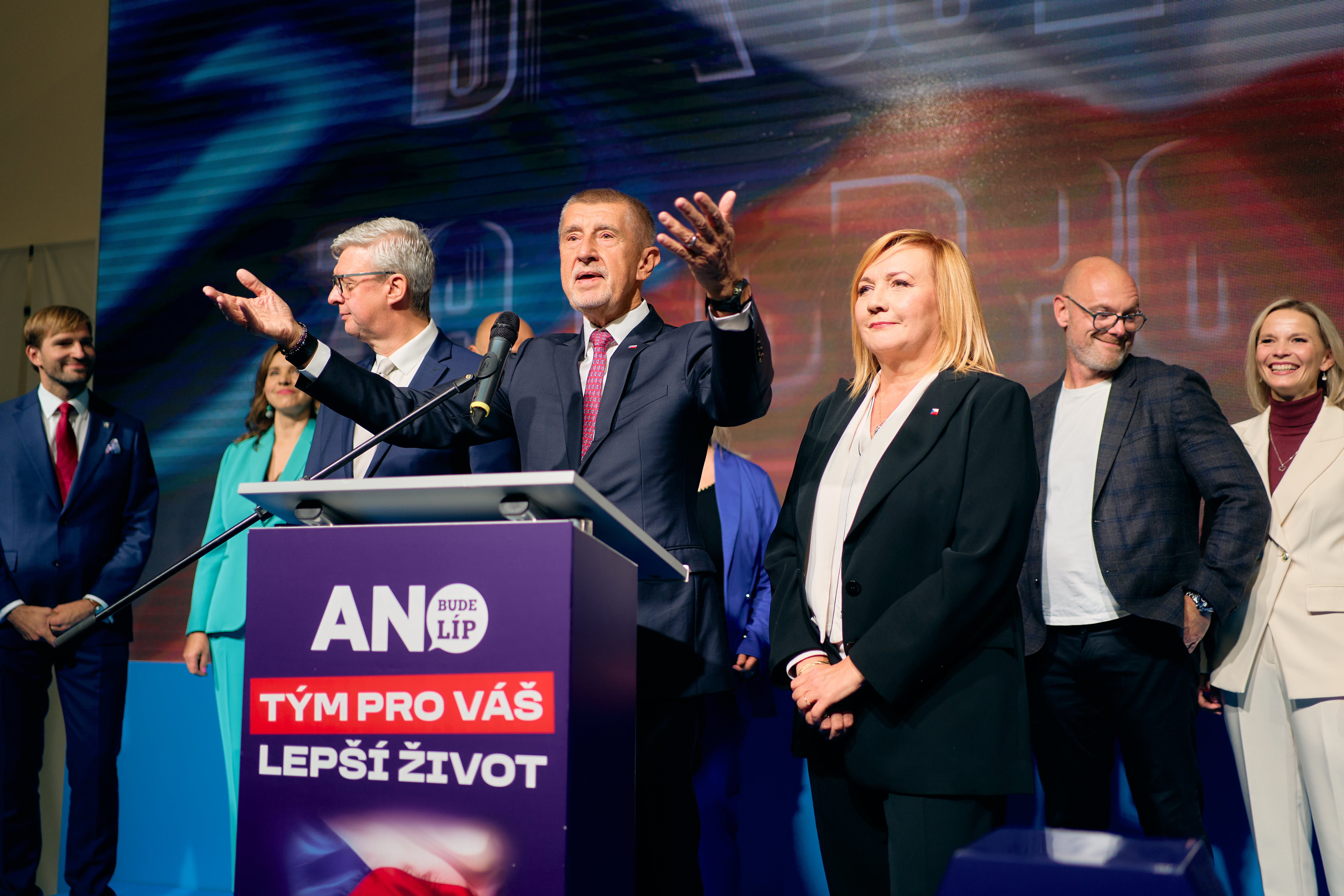 Galerie | FOTO: Babiš se po oslavách ve štábu přesunul domů. Tam jednal s Motoristy a SPD