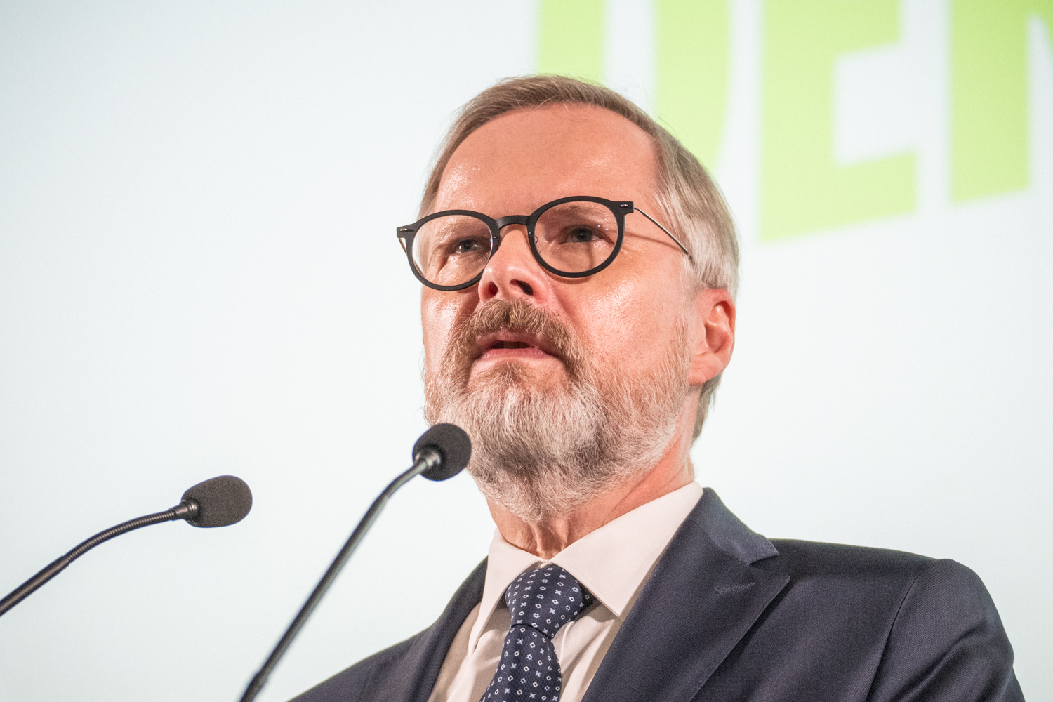 Galerie | FOTO: Lídři koalice Spolu se ve štábu jen mihli. Po tiskové konferenci odjeli