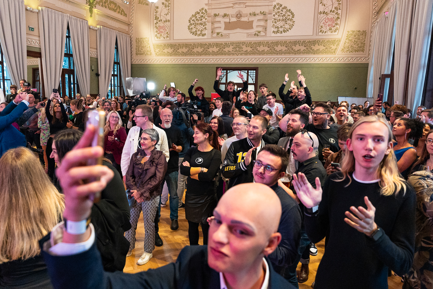 Galerie | FOTO: Piráti slaví. Hřib vidí úspěch v porážce SPD, vládní spolupráci s ANO odmítá