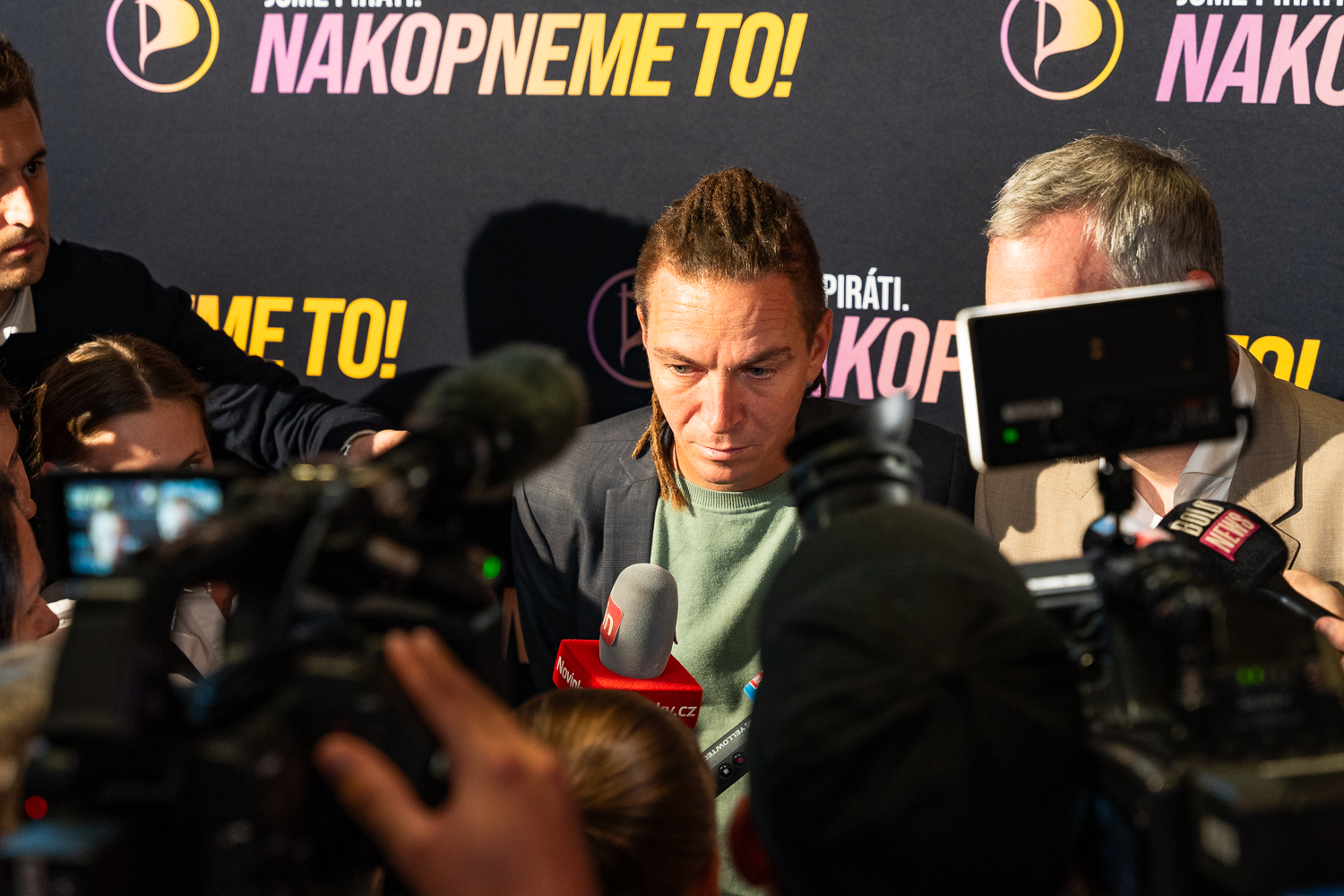 Galerie | FOTO: Piráti slaví. Hřib vidí úspěch v porážce SPD, vládní spolupráci s ANO odmítá