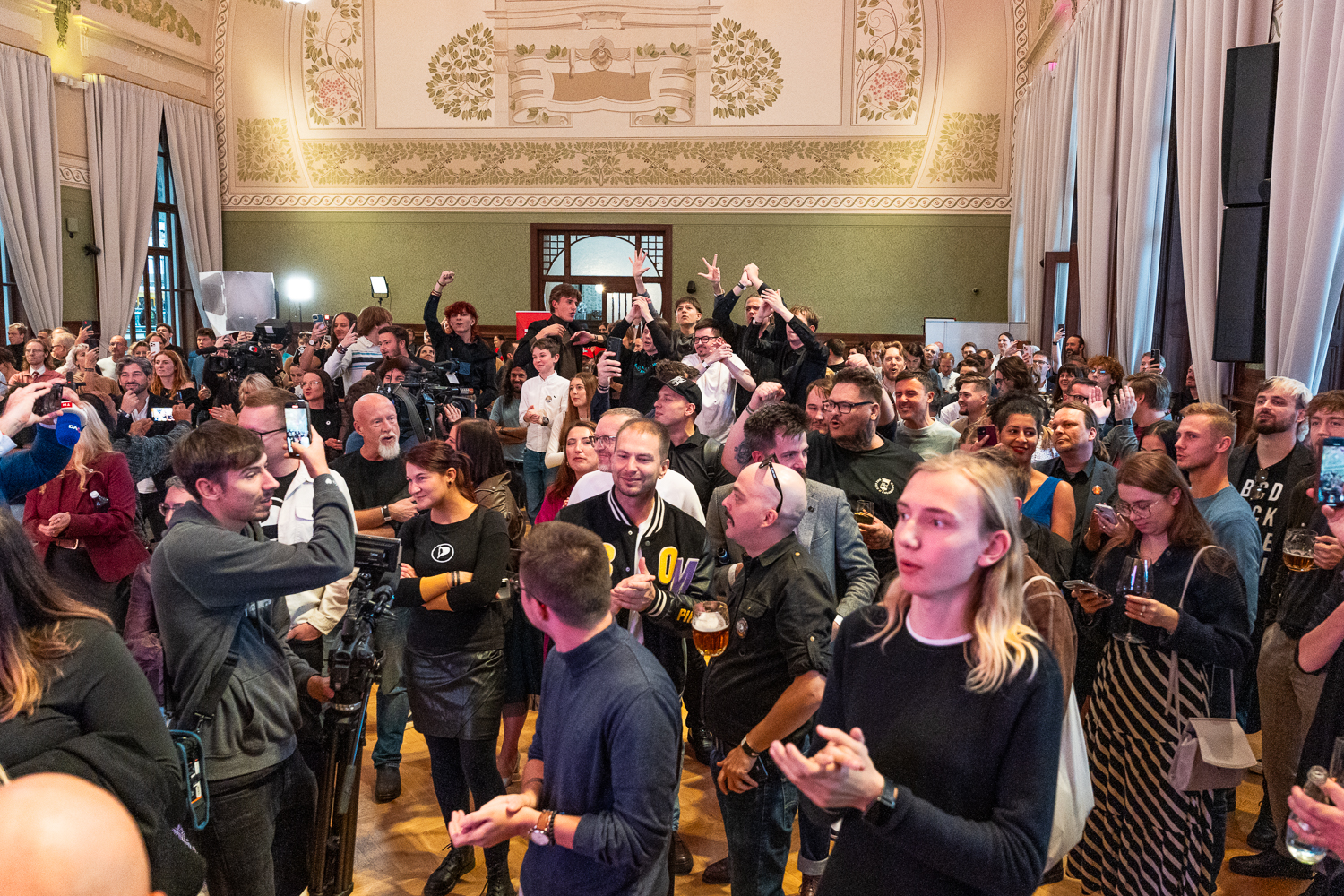 Galerie | FOTO: Piráti slaví. Hřib vidí úspěch v porážce SPD, vládní spolupráci s ANO odmítá