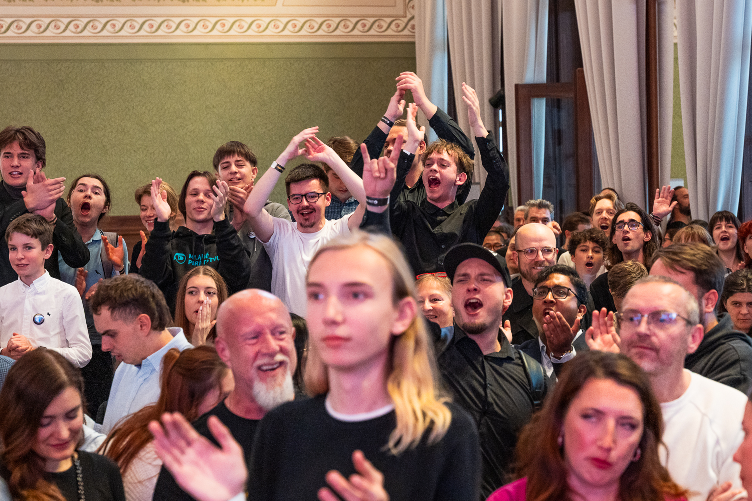 Galerie | FOTO: Piráti slaví. Hřib vidí úspěch v porážce SPD, vládní spolupráci s ANO odmítá