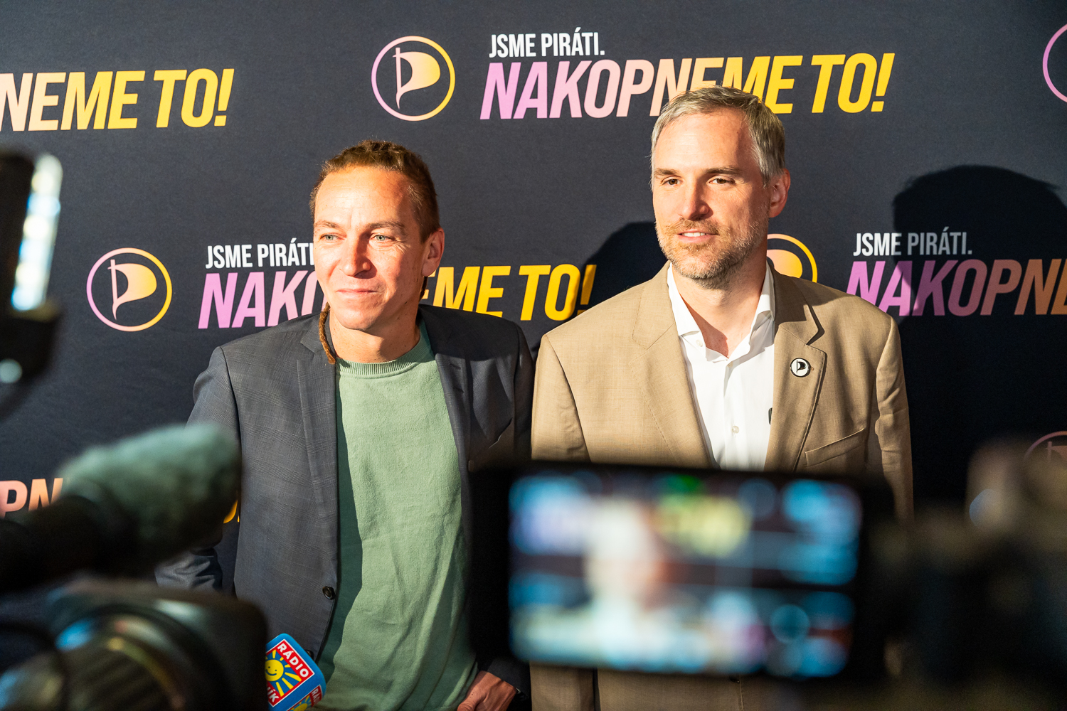 Galerie | FOTO: Piráti slaví. Hřib vidí úspěch v porážce SPD, vládní spolupráci s ANO odmítá