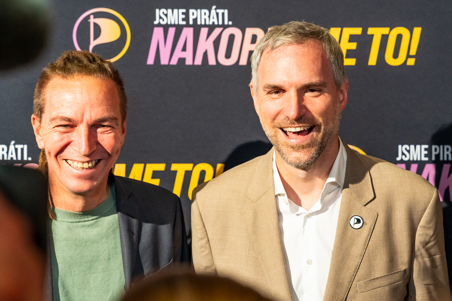 Galerie | FOTO: Piráti slaví. Hřib vidí úspěch v porážce SPD, vládní spolupráci s ANO odmítá