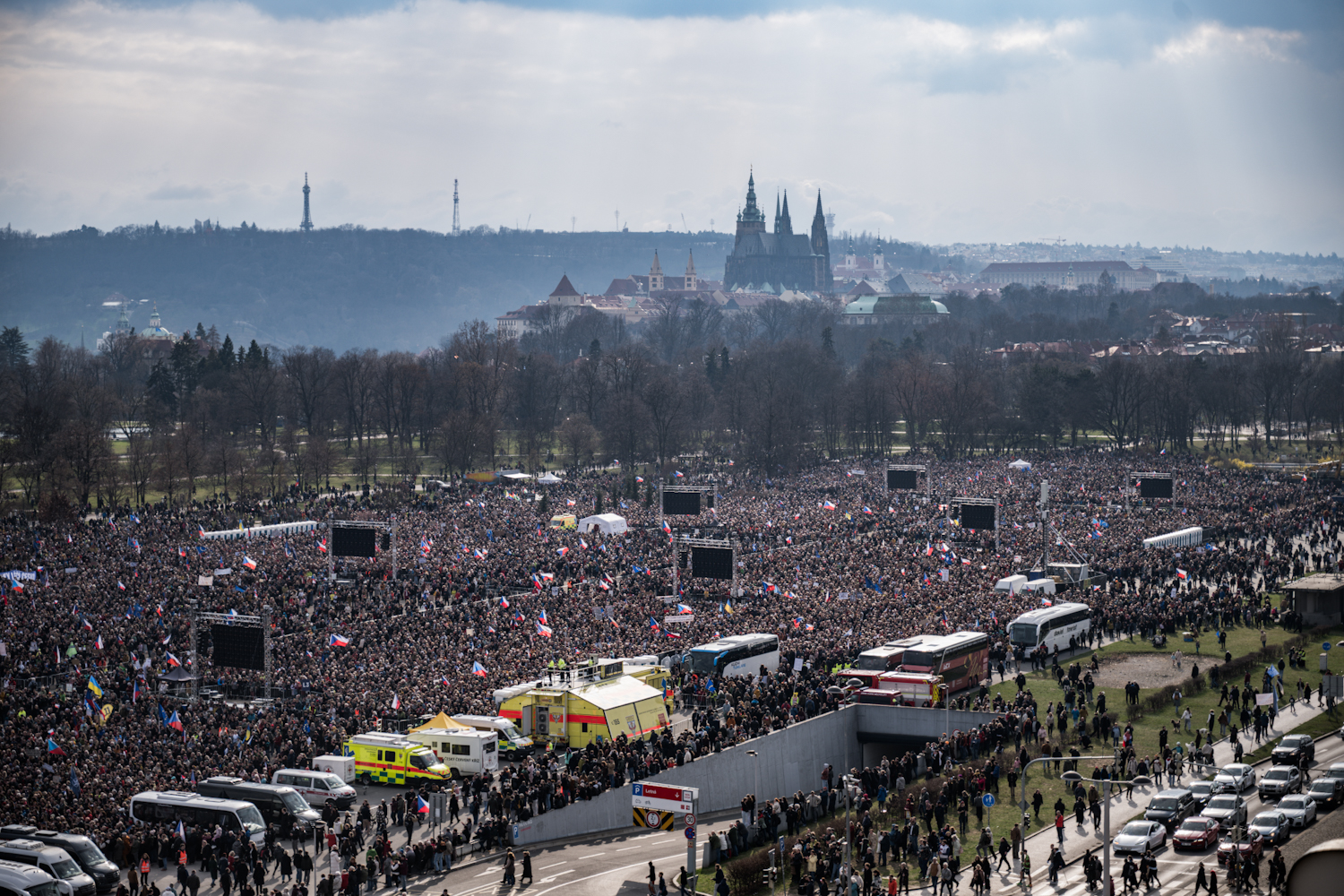 Na Letné se odpoledne sešly tisíce demonstrantů. (21.3.2026)