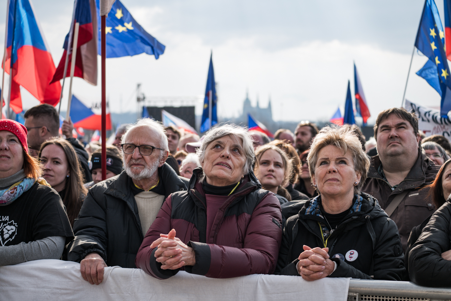 Na Letné se odpoledne sešly tisíce demonstrantů. (21.3.2026)