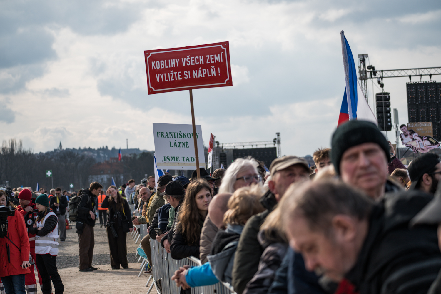 Na Letné se odpoledne sešly tisíce demonstrantů. (21.3.2026)
