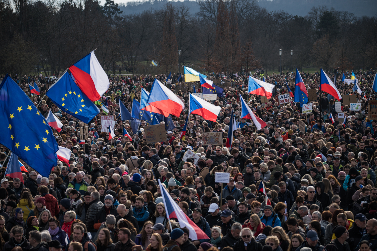 Na Letné se odpoledne sešly tisíce demonstrantů. (21.3.2026)