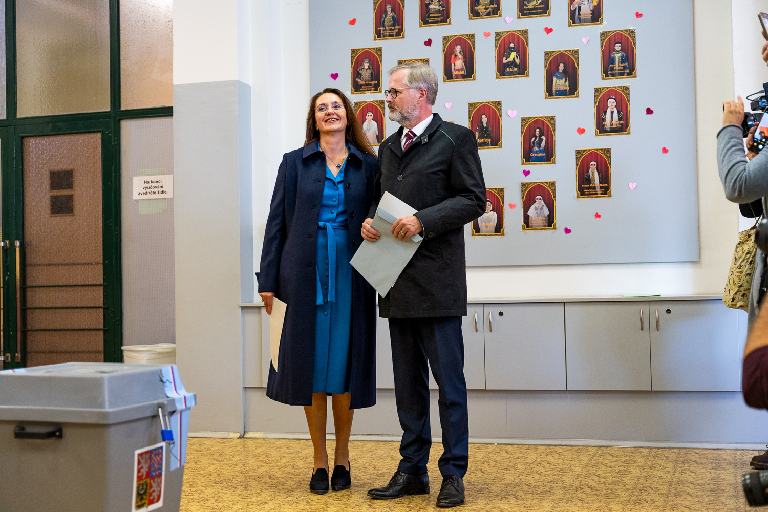 Galerie | Přijďte volit, vyzval Fiala u voleb v Brně! Po boku měl manželku